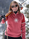 Knitted detailing and flatlock seams gets you noticed before, during and after skiing.