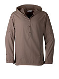 Waterproof/breathable fabric jacket with attached hood and visor. Stuffs into a pocket for packable convenience.