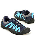An amphibious Chameleon that takes to the water as a sandal or, backstay removed, as a slide. Its skeletal structure of lace-anchoring, non-absorbing synthetic support struts backed by a padded mesh tongue sluice out water with every step.