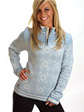 Dale of Norway's light-weight soft Merino sweater with quarter zip for women. Beautiful traditional Norwegian design. Machine wash.