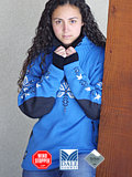 Velvet detailing on the cuffs and can be closed by invisible clasps behind velvet trimmings.