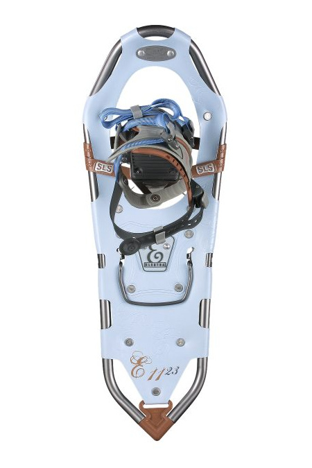 The Elektra 11 Series snowshoes bridge top-end performance for winter hiking with greater value. Built on the proven technology and value of the Atlas 6061 aluminum V-frame, durable stainless steel All-Trac toe crampon and flexible Nytex decking, the 11 Series snowshoes have the added security of Atlas' Advanced Aft Traction and a climbing bar to ease strain on calf muscles. The Wrapp Plus bindings are specially molded around men's lasts, with supportive arches that cradle the inside of your feet, and the urethane heel strap adjusts easily with the SureClick buckle. The Elektra frame features a narrower waist and tapered trail that allows a woman's natural stride to explore deeper terrain in comfort.