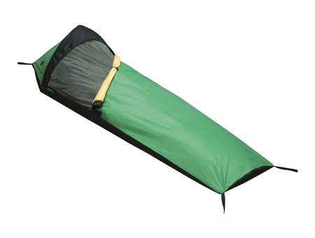Black Diamond's Bipod Bivy is vented, waterproof, lightweight, and built to make it through all four seasons. A single pole over the head and shoulder area allows for the bivy to open up for head room, great for those chilly nights when you want to zip up and escape to eye over your guide book. For a lightweight, compact, single-man tent venture over to this tent.