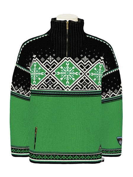 The Dronning Maud by Dale of Norway is made for active sports and leisure wear. The sweater is lined with Dale Polarwind highly breathable lining that is windproof and is also treated with Teflon making the sweater water and snow repellent. It's a high-necked sweater with zipper, drawstring, canvas reinforcement on the elbows and forearms, double pockets on the right side and with a hanger for lift-pass. Dronning Maud is a comfortable mix of 58% cotton and 29% Polyamid, and 13% Polyurethane which is combined with water resistance that is highly breathable. An expedition to the South Pole and the Queen Mauds Land is what inspired Dale to making such an action prone sweater, ice and snow being the base in the design. Since no two snowflakes are identical, there are two different versions. The Pole point is symbolized with a circle with a cross, whereas the lines above the main pattern represent the snow. The skis symbolize the expedition on their way to the Pole point, and you can see the ice-taps of the shoulders and sleeve. The Dale Sport collection are not only for active sports but leisure wear as well. With the unisex designs, distinct colors, striking patterns and functional detailing, anyone can benefit from it.