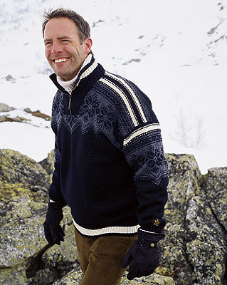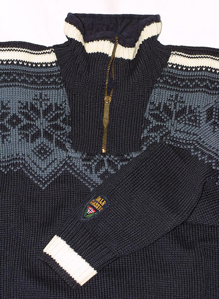 The Holmenkollen sweater is named after the famous Norwegian national ski jump arena in Oslo. Holmenkollen is a place to go on beautiful winter Sundays to watch ski jump competitions. At this arena you often dress in traditional Norwegian ski sweaters as King Olav V did when he took the trolley to Holmenkollen during the oil strike. In old black and white photos we see our former King in a nostalgic sweater, smiling and being friendly to the people around him. We drew inspiration for the Holmenkollen design from our beloved King Olav V's sweater, which includes nostalgic, crisp eight leaf roses and solid stripes, which were typical for the 1950's. We have also added more modern features such as the high fleece-lined zip neck. On the exclusive zipper pull the Holmenkollen name is engraved. This sweater is inspired by the sports fashion in 1952; when Oslo and Holmenkollen hosted the Winter Olympics.