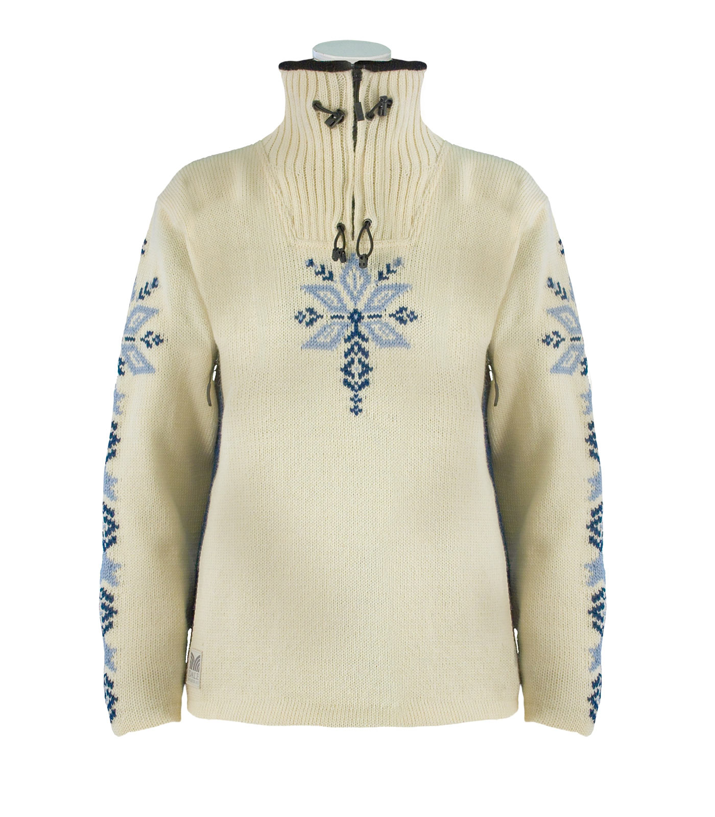 Istind is one of the magnificent mountain tops in the Lyngen Alps in Northern Norway. These Alps are considered to be one of the most majestic ski areas in the world, towering at nearly 5,000 ft. above the Ulls Fjord. Istind has become world famous as an extreme skiing destination and the favorite playground of the world's best skiers. Northern Norway is characterized by exceptional contrasts. In the Lyngen area the steep icy mountains dive into the crisp, clear blue water, and in the Istind design the icy coldness is illustrated with a snowflake and on the arms. Skiers describe the Lyngen Alps as an area where man and nature live in perfect harmony. This harmonic atmosphere is carried forward in all four sporty colors. Gore Windstopper, Teflon and the many functional details prove that this sweater was made for the extremes of nature yet design for the woman with a sense of style.