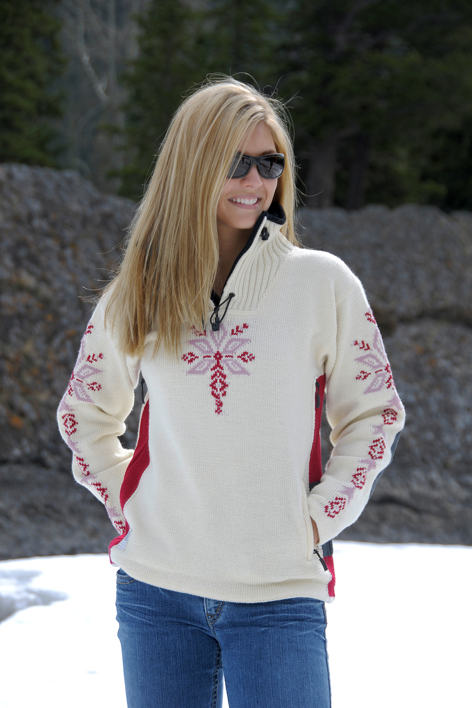 Istind is one of the magnificent mountain tops in the Lyngen Alps in Northern Norway. These Alps are considered to be one of the most majestic ski areas in the world, towering at nearly 5,000 ft. above the Ulls Fjord. Istind has become world famous as an extreme skiing destination and the favorite playground of the world's best skiers. Northern Norway is characterized by exceptional contrasts. In the Lyngen area the steep icy mountains dive into the crisp, clear blue water, and in the Istind design the icy coldness is illustrated with a snowflake and on the arms. Skiers describe the Lyngen Alps as an area where man and nature live in perfect harmony. This harmonic atmosphere is carried forward in all four sporty colors. Gore Windstopper, Teflon and the many functional details prove that this sweater was made for the extremes of nature yet design for the woman with a sense of style.
