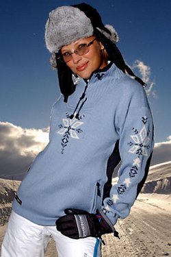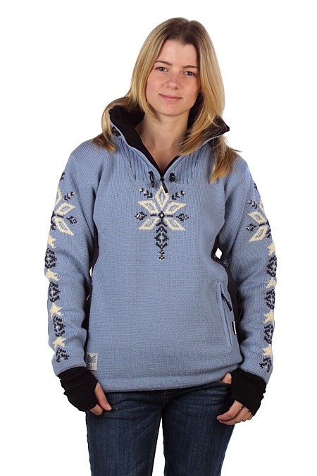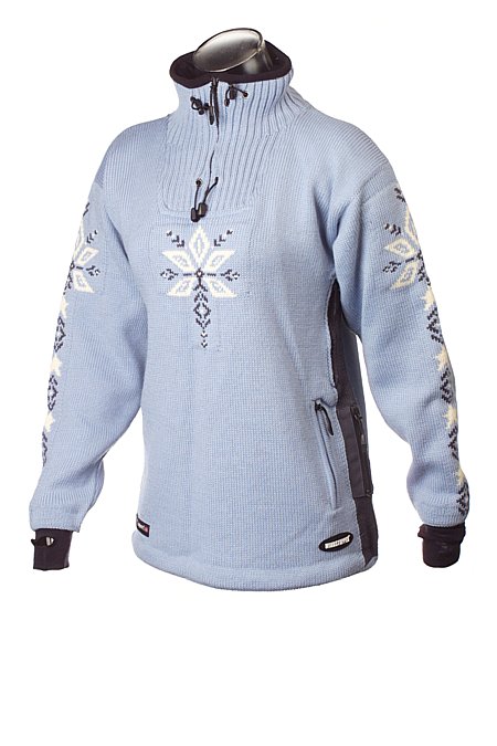 Istind is one of the magnificent mountain tops in the Lyngen Alps in Northern Norway. These Alps are considered to be one of the most majestic ski areas in the world, towering at nearly 5,000 ft. above the Ulls Fjord. Istind has become world famous as an extreme skiing destination and the favorite playground of the world's best skiers. Northern Norway is characterized by exceptional contrasts. In the Lyngen area the steep icy mountains dive into the crisp, clear blue water, and in the Istind design the icy coldness is illustrated with a snowflake and on the arms. Skiers describe the Lyngen Alps as an area where man and nature live in perfect harmony. This harmonic atmosphere is carried forward in all four sporty colors. Gore Windstopper, Teflon and the many functional details prove that this sweater was made for the extremes of nature yet design for the woman with a sense of style.