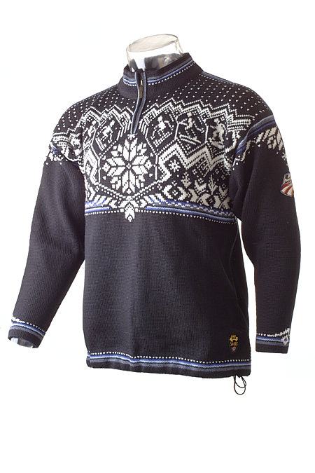 - Winter sports zip-neck sweater in 100% pure wool, 4-ply Heilo yarn