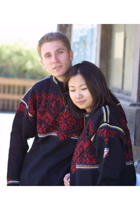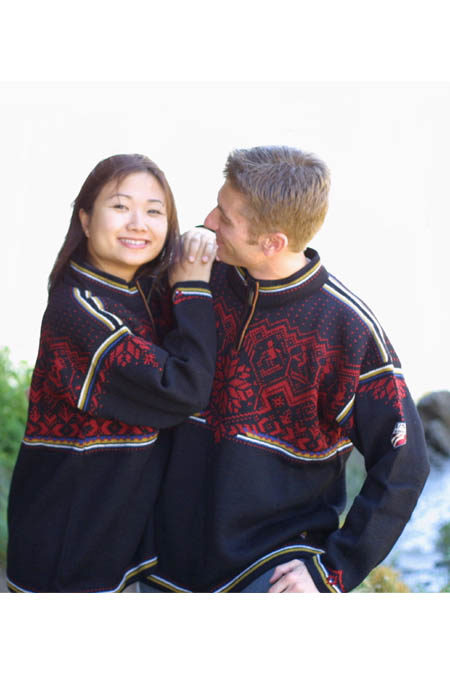 - Winter sports zip-neck sweater in 100% pure wool, 4-ply Heilo yarn