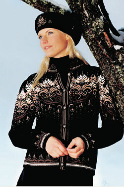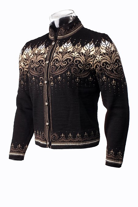 The design is inspired by the ancient Norwegian dragon art. This period style is i.e. to be found in the Norwegian Kings mountain farm; the place where our Princess Martha is reading fairytales for Norwegian children (shown on the Norwegian childrens TV). The design is hence named after her. Short Cardigan