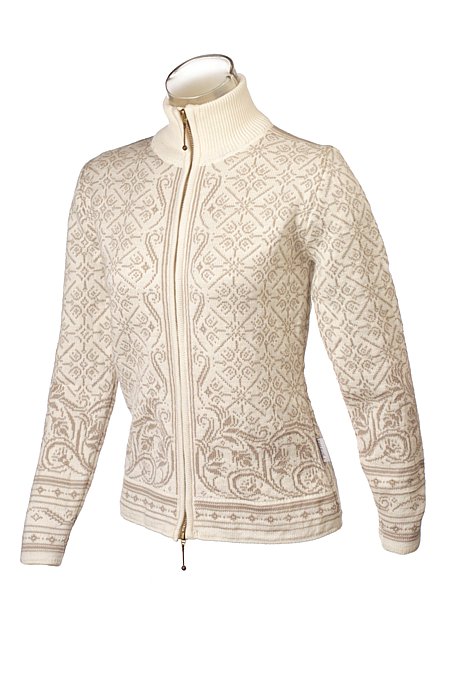 This beautiful cardigan is named after the character Solveig in Henrik Ibsens play Peer Gynt. Solveig was Peer Gynts patient and faithful girlfriend who waited for him through all his journeys and mischief. The design is very delicate and the colors soft and balanced. Knitted in an extra soft and yarn, it has a two-way zipper to secure a perfect fit.