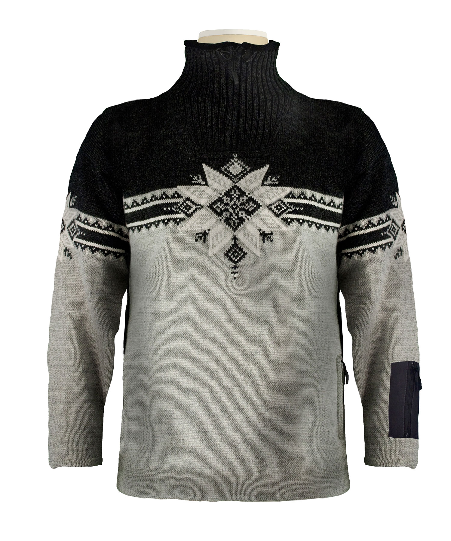 - 4-ply Heilo Norwegian wool that traps in warmth in hollow fibers provides enough insulation and weight so that you can use this sweater as an outwerwear