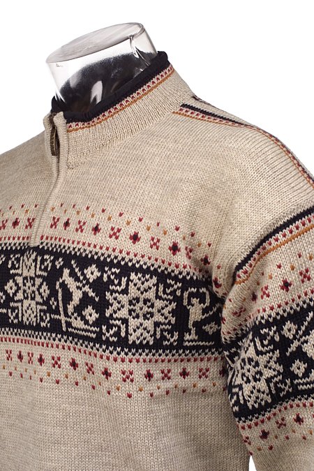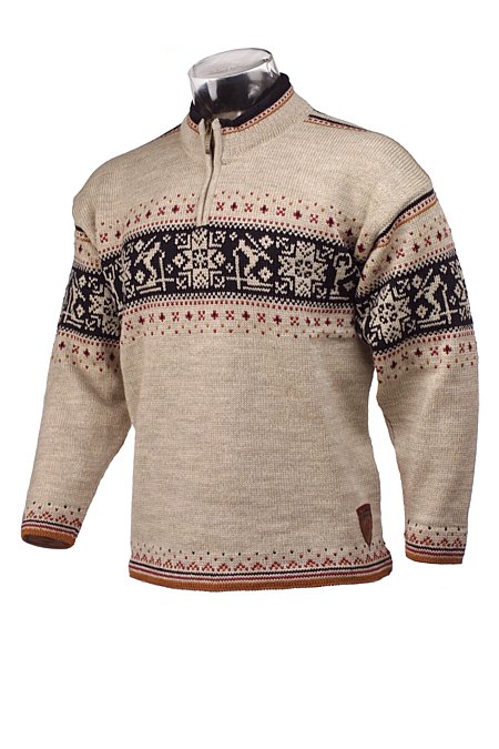 The 2006 Colorado Springs sweater was proudly worn by U.S. athletes during the 2006 Torino Olympic Winter Games. A true collector's item, this is special Olympic edition of Colorado Springs sweater from Dale and will not be produced again. It features official Olympic Team USA insignia, and a cool story. Steamboat Springs is said to have been named by three French fur trappers traveling down the Yampa River in 1865. They heard a chug-chug sound like that of a paddlewheel steamer traveling toward the sound, they discovered it to be one of the areas numerous bubbling springs hence the name Steamboat Springs. In 1912 the arrival of the Norwegian by the name Carl Howelson changed Steamboat Springs forever. Howelson brought with him his love of skiing and taking advantage of the natural terrain and climate was soon giving ski jumping lessons to local youngsters. By 1914 he had organized the first Winter Carnival and jumping competition an event that is held to this day and was honored in 1917 by having the towns official ski slope Howelsen Hill named after him. The Steamboat sweater is an honor to this areas rich history, culture and magnificent scenery. The lines around the waist and on the shoulders are inspired from Ute Indian basket weaving and the large star shaped pattern on the chest is taken from a detail on an old quilt. The eight leaf between the main patterns ties bonds to the Norwegian heritage and culture. In the middle there are the bubbling springs which have given name to the area. In the pattern you can also picture the magnificent Steamboat scenery with its many snow-capped mountaintops the highest stretching over 10500 feet.