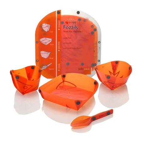 A complete 1 person set (Cup, Bowl, Dish and Spoon) in its own super thin and light reusable container. Featuring Fozzils' patented easy to use snap system, the Solo Pack has everything you need for a hike, picnic, or round the world adventure.