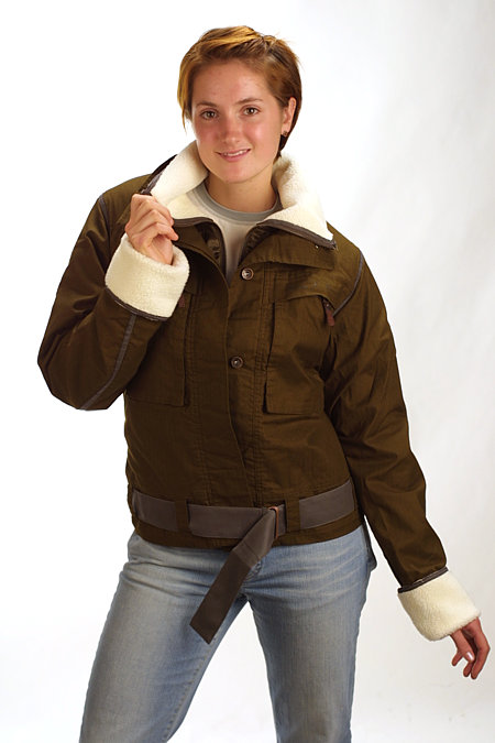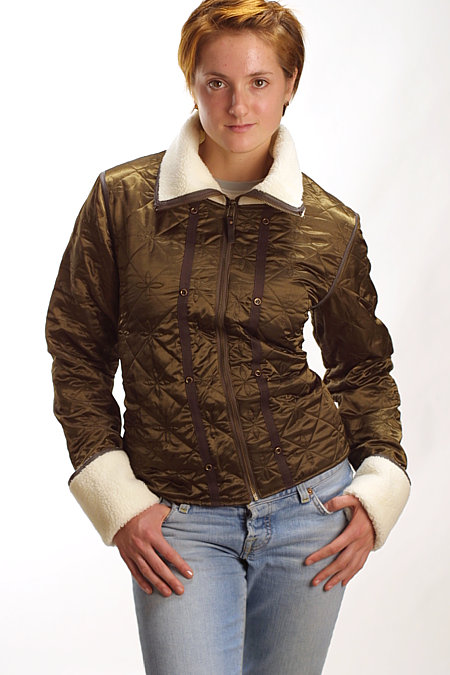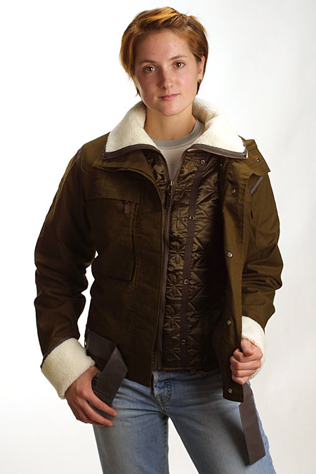 - Quilted satin liner with pile collar and cuffs