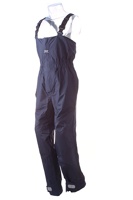 Helly Hansen Waterproof high-fit technical pants with Nylon teffeta lining for rugged conditions. Includes durable reinforcements on knees and seat and adjustable elastic braces. Excellent protection for any sailing and water activities. Velcro cuffs on ankles. Helly Hansen's top seller in the category.