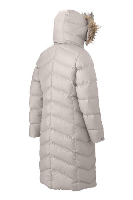 Get covered from your head to your knees with Marmot's new Montreaux down fill parka. Its faux fur hood and fleece comfort cuffs add to the extreme comfort and warmth of this stylish long winter coat. The Montreaux weighs in at less than three pounds, making this long coat not only warm but also lightweight - perfect for all day wear. A hidden inner zip pocket stores wallets, phones, or whatever else should not get lost. When the winter days are long, wear a long winter coat.