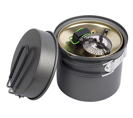 Get down to the chase with Optimus' Weekend Cook System. This cook set comes matched with a stove and pot that fits together better than bread and jelly. It's lightweight, packs well, and fits a 0.5 pound fuel canister inside. Perfect for the weekend getaway.