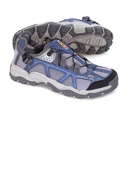 The Salomon Men's Techamphibian Sandal combines the best of both worlds between the shoe and the sandal. It's Vent 180 degree design, synthetic quick drying, breathable and Anti-debris mesh provide superior drainage and venting to keep your feet from looking like grandpa's prunes. Salomons' Sensifit design,Quickfit Lacing System combined with an ajustable heel strap and patented convertable heel provide you with comfort and convenience. Also Salomon's Non-marking Water Contagrip outsole and rubber toe cap help protect you and keep you grounded...well, at least your feet. With the sporty and versatile Salomon Techamphibian sandal you can go explore your world on land and in water.