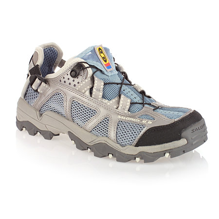 The Salomon Women's Techamphibian Sandal combines the best of both worlds between the shoe and the sandal. It's Vent 180 degree design, synthetic quick drying, breathable and Anti-debris mesh provide superior drainage and venting to keep your feet from looking like grandpa's prunes. Salomons' Sensifit design, Quickfit Lacing System combined with an ajustable heel strap and patented convertable heel provide you with comfort and convenience. Also Salomons' Non-marking Water Contagrip outsole and rubber toe cap help protect you and keep you grounded...well, at least your feet. With the sporty and versatile Salomon Techamphibian sandal you can go explore your world, or both.