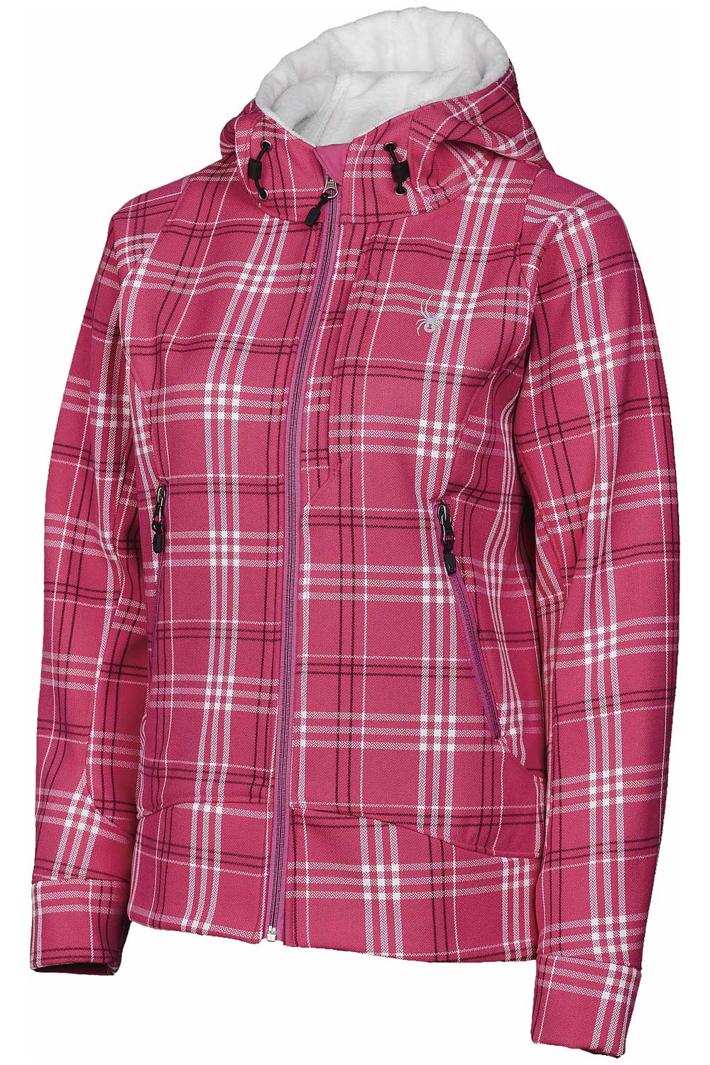 Spyder Arc Soft Shell Hoodie Women's (Hot Pink Plaid)