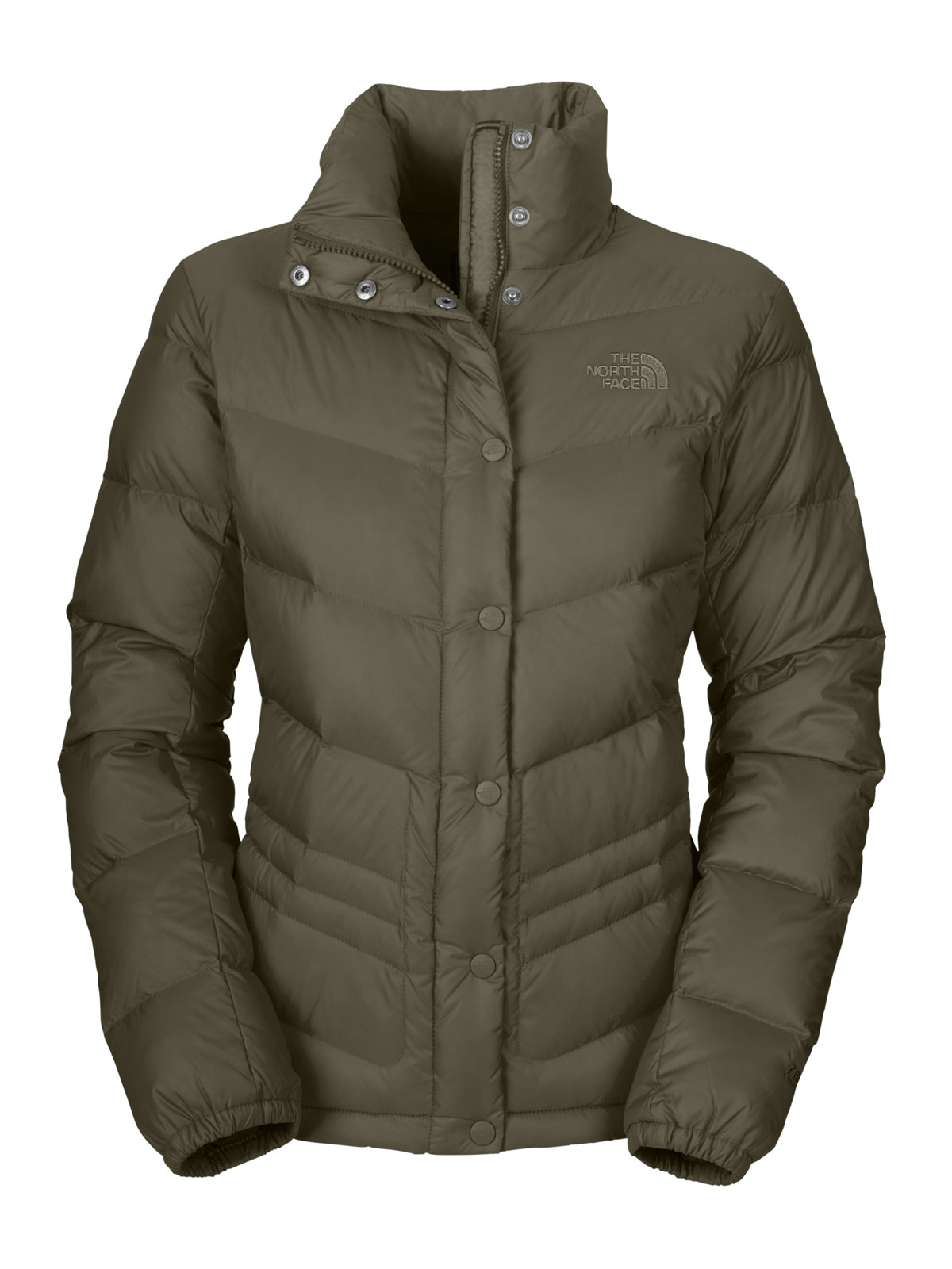 Amply insulated with a lofty 700 fill goose down, this new thermal down jacket features a sleek, slim fit silhouette without sacrificing warmth. Slanted, feminine quilting keeps down shifting, eliminating cold spots. Full zip disguised by snap-down front flap.