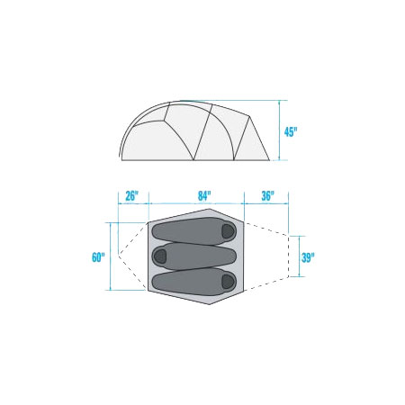 - Capacity: 3 people, Fabric: canopy: 40D 240T nylon ripstop, fly: 75D 185T polyester ripstop coated with 1500 mm PU, floor: 70D 210T nylon taffeta coated with 10000 mm PU