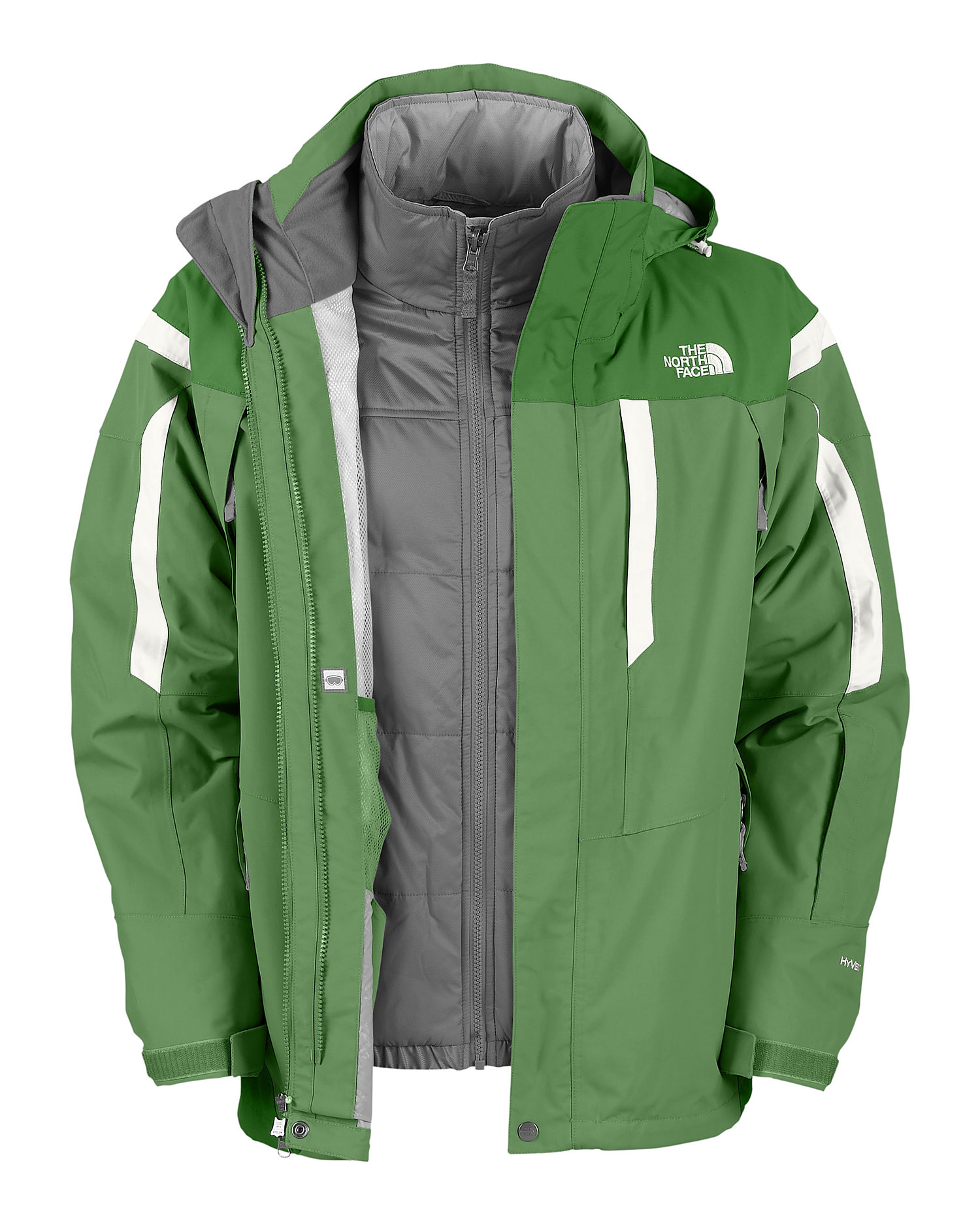 Big on versatility, this three-in-one jacket includes a waterproof, breathable, fully seam sealed shell and an insulated, removable, interior jacket that allows athletes to mix and match to adjust to variable temperatures. When worn as one, the Vortex Triclimate Jacket provides waterproof, breathable, insulated protection against grueling conditions. Stylized with racing hits on the exterior, the shell of this jacket retains a traditional alpine look, with innovative technical features. Zip-in compatibility with complementing The North Face garments.