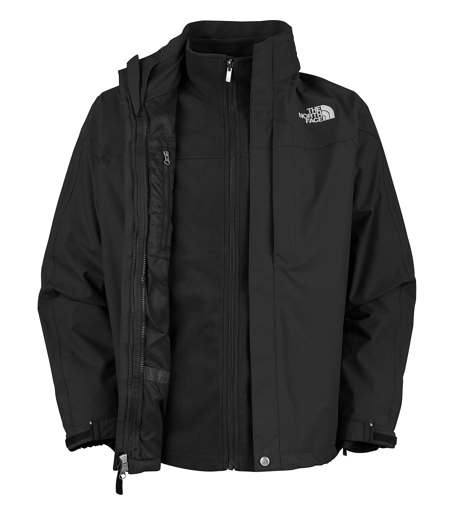 This versatile three-in-one jacket combines a heavy-duty, waterproof, HyVent 2L exterior shell, and a removable, wind-resistant fleece interior jacket. Worn together, these jackets create a tough defense against harsh conditions.